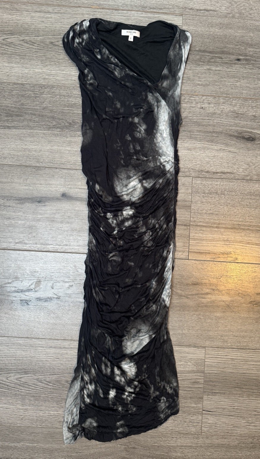 $ 11.22AMUSE SOCIETY Addyson Mini Dress Sz M Black VNeck Tie Half Sleeve Viscose Woven