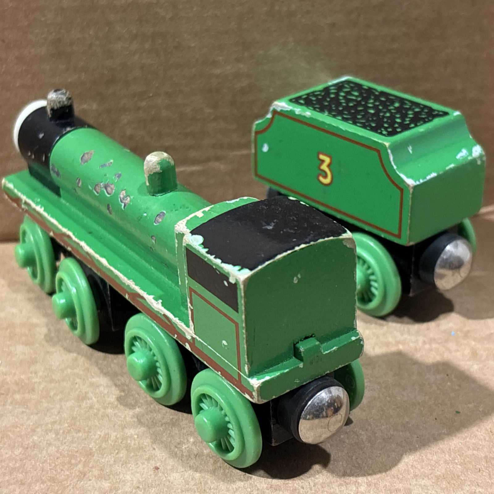 Henry & Tender Thomas & Friends Wooden Railway Train Tank Engine Vintage 1996 - see photos for wear and tear - some heavy wear and scraped paint - ships usps ground advantage.