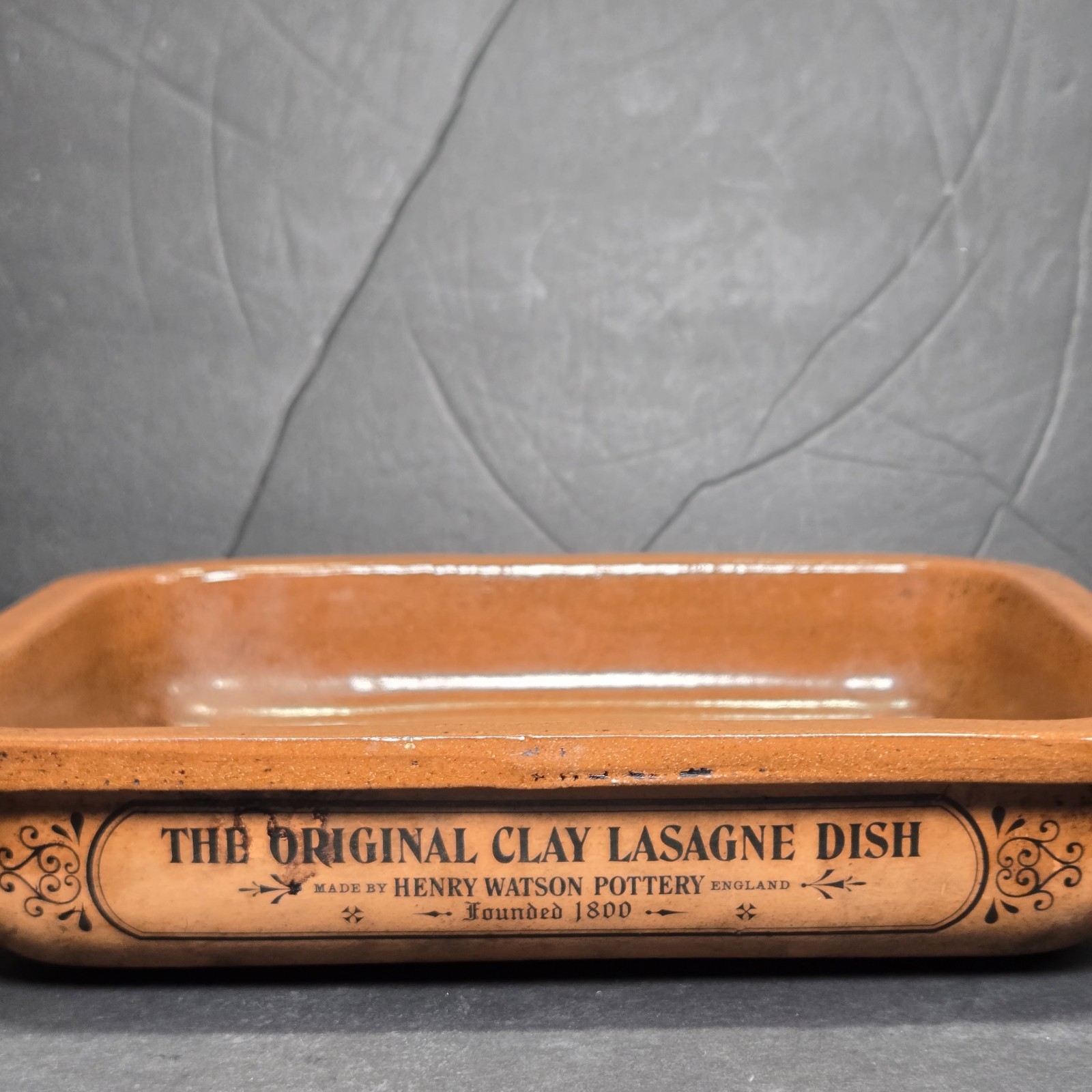The Henry Watson Pottery Original Clay Lasagne Dish is a rectangular baking dish made from terracotta, featuring a brownish orange color. This oven-safe dish, with dimensions of 11 inches in length, 9 inches in width, and 3 inches in height, is perfect for baking and roasting your favorite meals. Crafted in England by the renowned brand Henry Watson Pottery, this ceramic-coated bakeware adds a touch of authenticity and charm to your kitchen.
