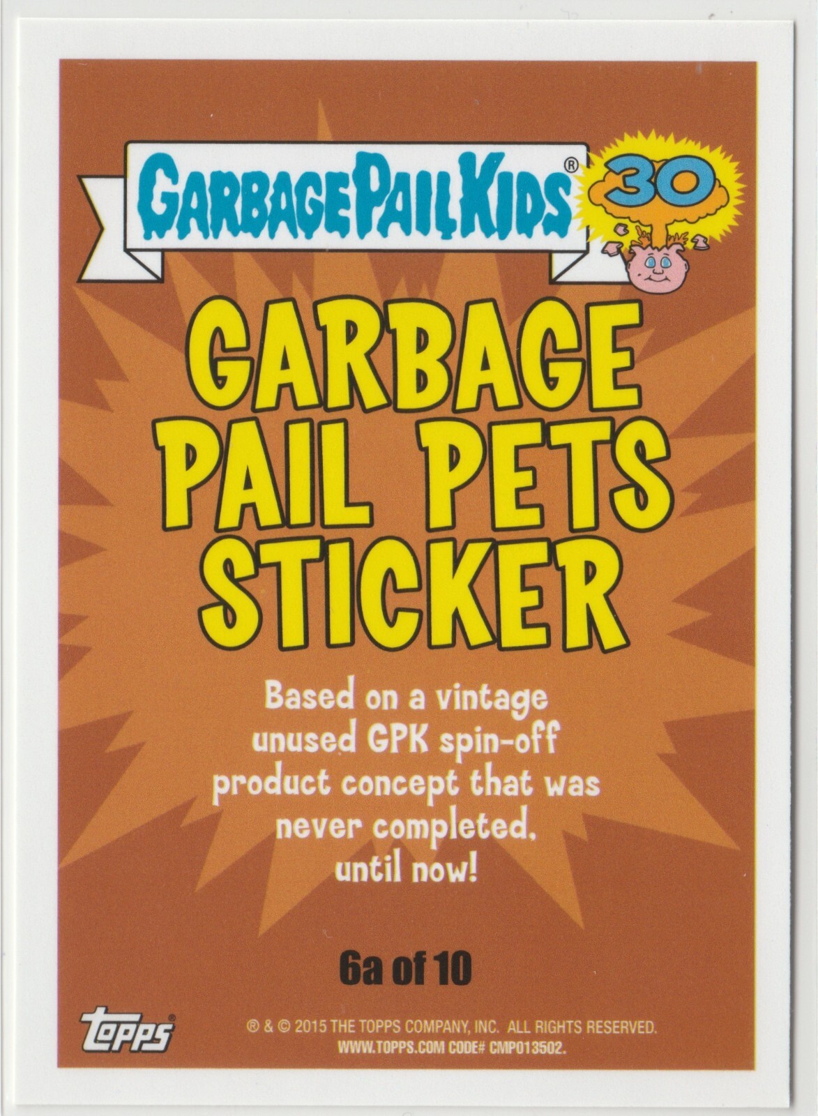 Herbert Hermit Crab #6a of 10 Topps Garbage Pail Kids GPK 2015 30th Anniversary Series Garbage Pail Pets Sticker subset personal stock photos centering of card may vary compared to listed images