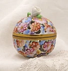 Limoges, France Artoria Round Trinket box with butterflies, moths, flowers