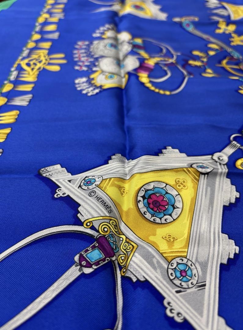 Hermes Carre 90 Scarf Blue Excellent Used No Box Authentic 90in