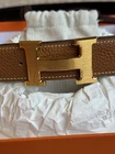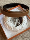 The Hermes H belt buckle and reversible leather strap in 44mm width is a classic and stylish accessory for men. Made of high-quality leather in a solid brown color, it features a sleek buckle accent and reversible design for versatile styling options. With its adjustable and dress belt style, this Hermes belt is perfect for adding a touch of sophistication to any outfit. Ideal for the modern man who appreciates timeless elegance and superior craftsmanship. Authentic Hermes belt in like new condition.