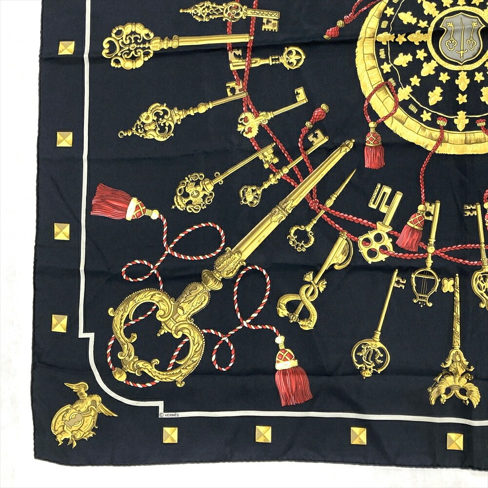 Hermes 90 Les Cles Scarf Silk Black Key r25_0710