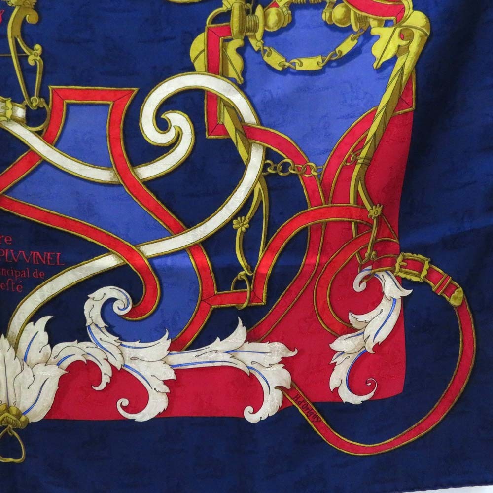 Hermes Carre 90 Silk Scarf Cavaliers Peuls Navy Brown Used