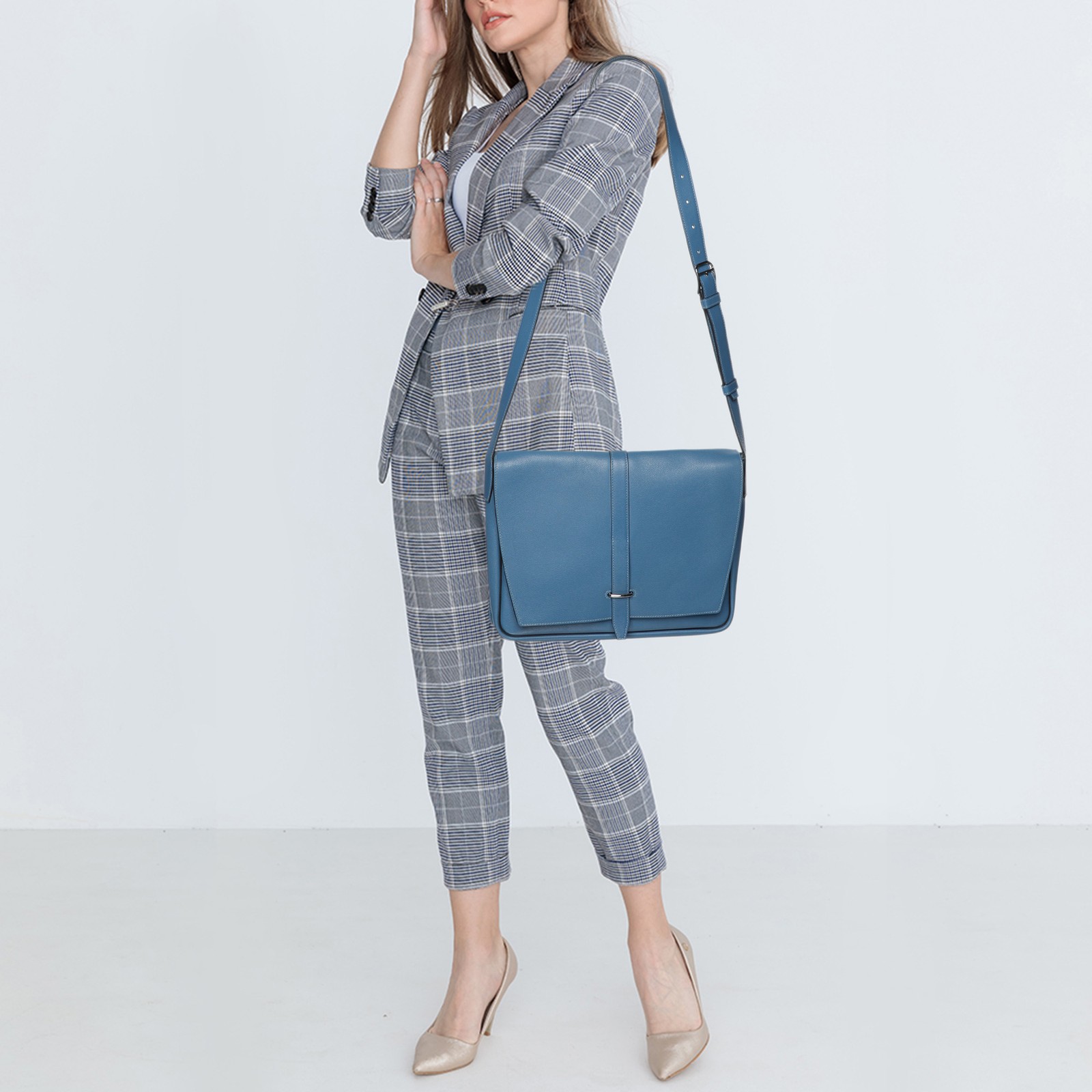 Experience timeless elegance with this exquisite blue leather messenger bag. Crafted with precision in France, its sleek design includes an adjustable strap, a canvas lined interior, and silver tone hardware.Certified by The Luxury Closet - This item has gone through a detailed authentication process overseen by our experts. We offer a lifetime guarantee of authenticity on all our items. Import duties, taxes and charges are not included in the item price. These charges are the buyers responsibility. Please check with your country’s customs office to determine what these additional cost will be prior to buying. Our eBay Store About Us Contact Us Add to Favorite Sellers Hermes Azur Togo Steve Light Messenger Bag $3538.7 Experience timeless elegance with this exquisite blue leather messenger bag. Crafted with precision in France, its sleek design includes an adjustable strap, a canvas lined interior, and silver tone hardware. Product Details Brand Color Blue Dimensions Height: 27 cm, Width: 5 cm, Length: 35 cm Material Leather Size Outsole Width Outsole Length Heel Height Includes The Luxury Closet Packaging Certified by The Luxury Closet This item has gone through a detailed authentication process overseen by our experts. We offer a lifetime guarantee of authenticity on all our items. How We Check The in-house team of experts at The Luxury Closet is highly trained to verify the authenticity and the condition of the luxury products. They ensure that only 100% authentic items are put on sale.The evaluation process is unique with its own mix of assessment criteria and differs according to the category. Each item is evaluated based on the following combination of hallmarks, hardware, stitching, symmetry, material, craftsmanship, stamping, codes, hologram stickers, and packaging. Our authenticators also check if the items have been modified or amended (e.g., aftermarket diamonds, replaced batteries, repaired bags, etc.) International Buyers Import duties, taxes and charges are not included in the item price. These charges are the buyers responsibility. Please check with your country’s customs office to determine what these additional cost will be prior to buying.