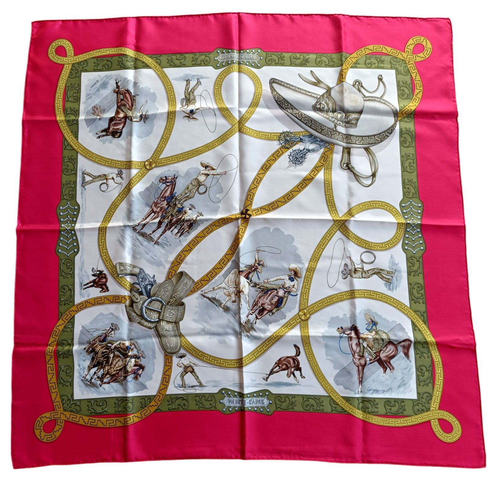 $ 107.35HERMES Carre 90 "BOLDUC AU CARRE" 100% Silk Scarf Vintage Rare w/Box