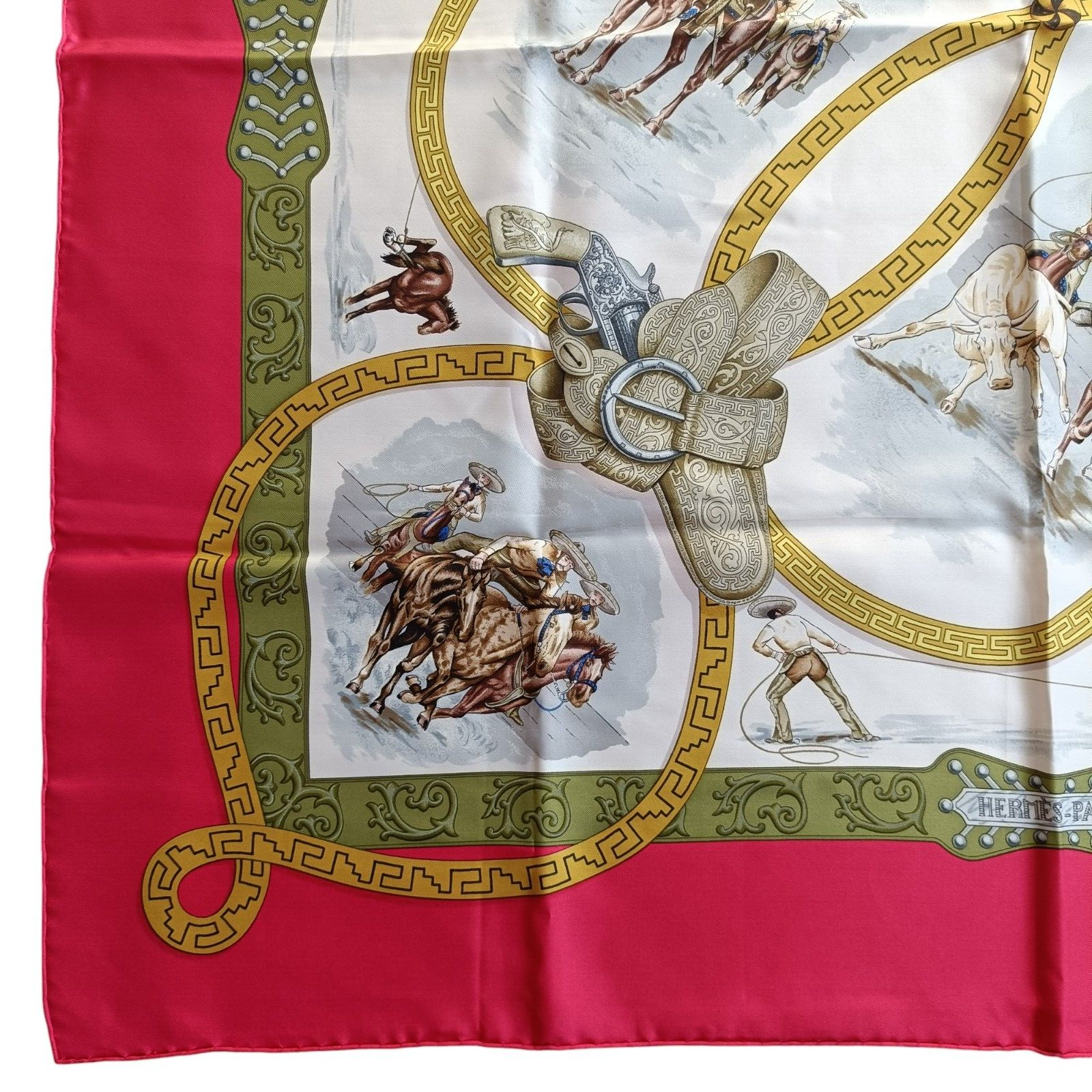 Beautiful scarf as described arrived well packaged and shipped in good time. Excellent value but I would suggest not describing the scarf as vintage rare as It is not a holy grail scarf by any means but I paid a lot more at customs because of that description instead of just based on the actual price. Despite that I am very pleased and will certainly buy from this seller again.