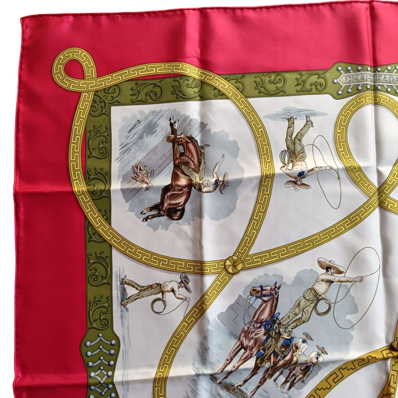 Hermes COLS VERTS Carre 90 Silk 100% Scarf Vintage Rare Red Black