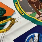 $ 167.5Hermes 90cm Brazil Silk Scarf Green Orange Feather Vibrant Fashion Accessory