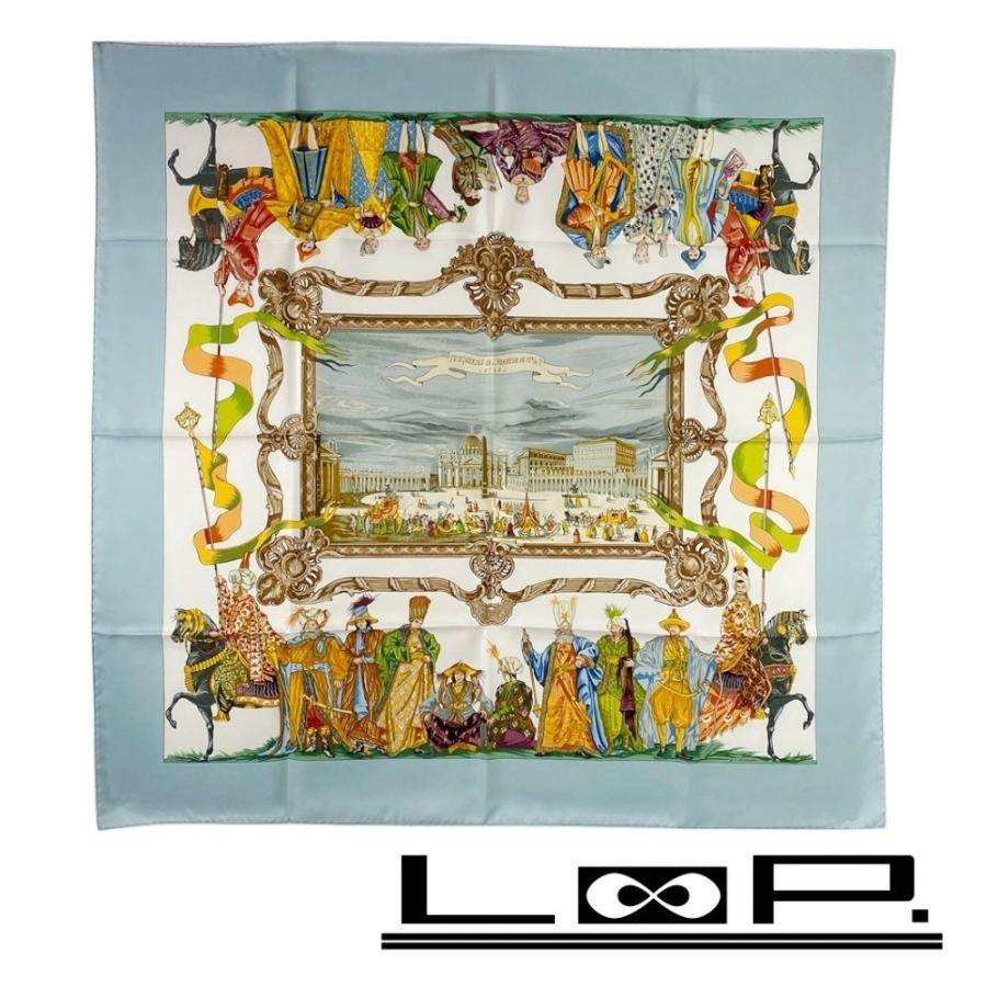 $ 218.97Hermes Scarf H001573S45 Carre90 Silk 90cm Springs Cobalt Orange Blue