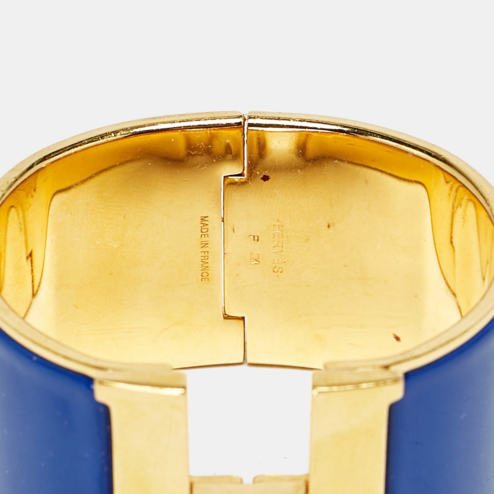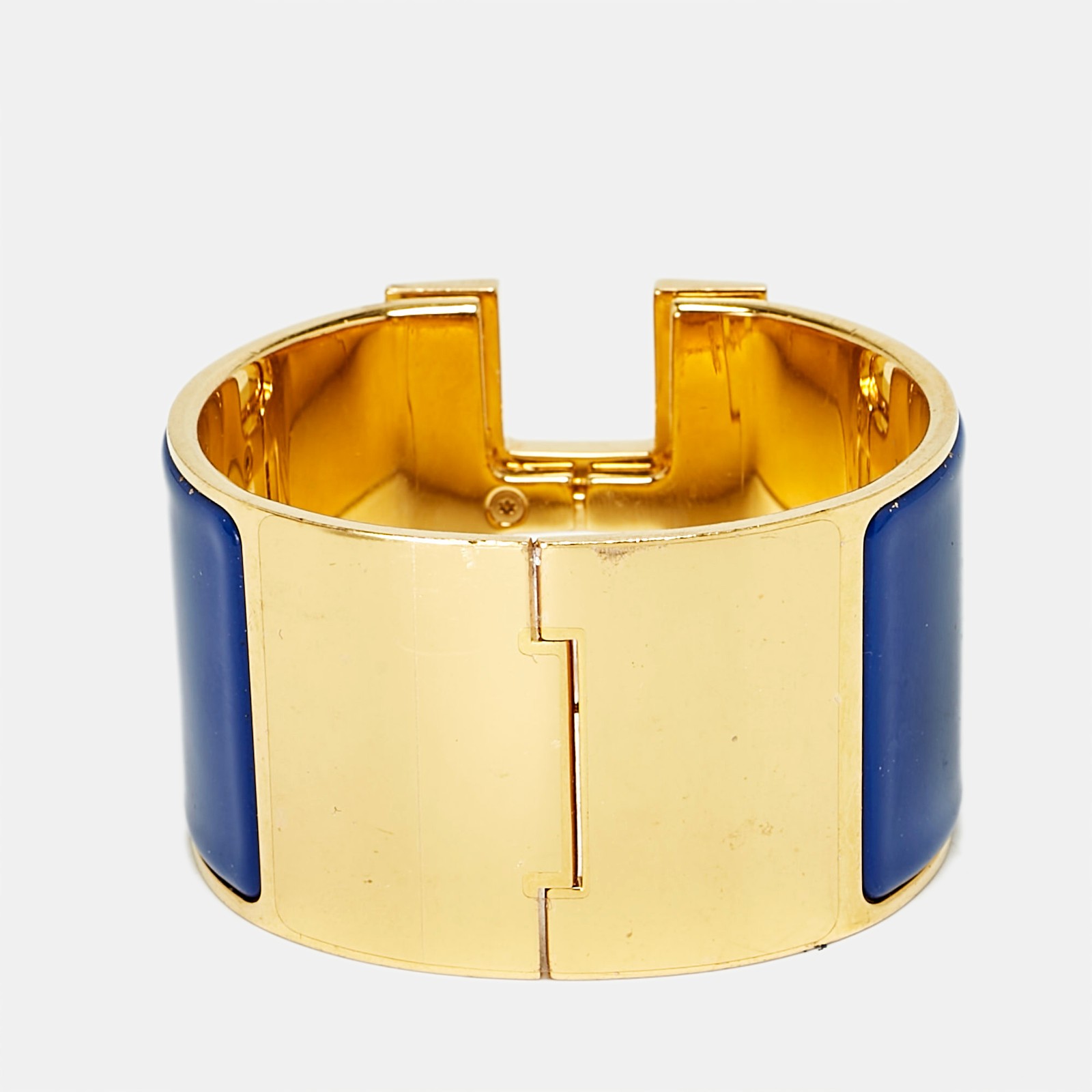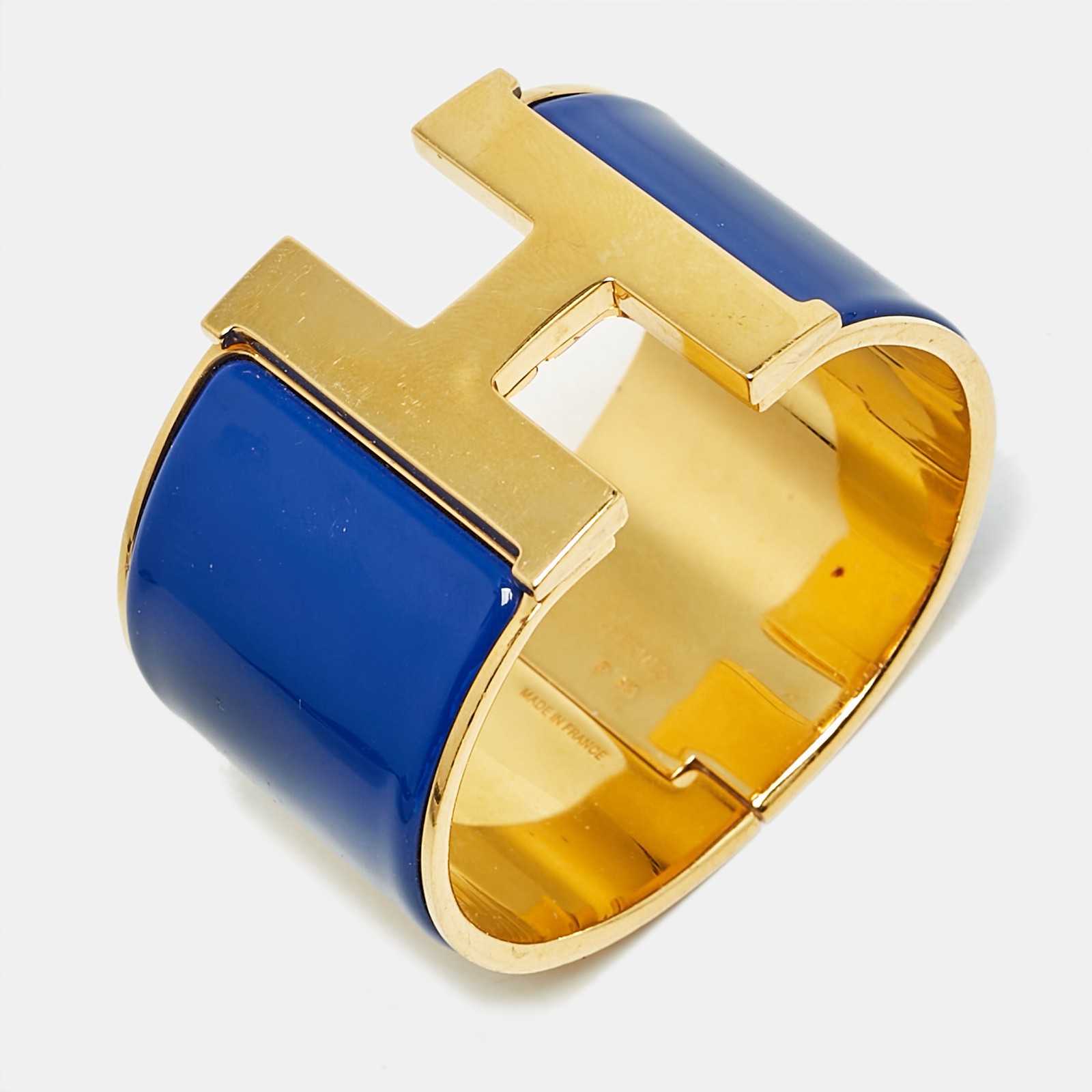 Hermès’ Clic Clac H bracelet in blue enamel and gold plated hardware is a house icon. With a secure hinged closure and sleek profile, it’s perfect for everyday polish. Stack it with bangles or wear solo to highlight its timeless design and elegant pop of color.Certified by The Luxury Closet - This item has gone through a detailed authentication process overseen by our experts. We offer a lifetime guarantee of authenticity on all our items. Import duties, taxes and charges are not included in the item price. These charges are the buyers responsibility. Please check with your country’s customs office to determine what these additional cost will be prior to buying. Our eBay Store About Us Contact Us Add to Favorite Sellers Hermès Clic Clac H Blue Enamel Gold Plated Bracelet $699.6 Hermès’ Clic Clac H bracelet in blue enamel and gold plated hardware is a house icon. With a secure hinged closure and sleek profile, it’s perfect for everyday polish. Stack it with bangles or wear solo to highlight its timeless design and elegant pop of color. Product Details Brand Color Blue Dimensions Material Enamel Size Outsole Width Outsole Length Heel Height Includes Certified by The Luxury Closet This item has gone through a detailed authentication process overseen by our experts. We offer a lifetime guarantee of authenticity on all our items. How We Check The in-house team of experts at The Luxury Closet is highly trained to verify the authenticity and the condition of the luxury products. They ensure that only 100% authentic items are put on sale.The evaluation process is unique with its own mix of assessment criteria and differs according to the category. Each item is evaluated based on the following combination of hallmarks, hardware, stitching, symmetry, material, craftsmanship, stamping, codes, hologram stickers, and packaging. Our authenticators also check if the items have been modified or amended (e.g., aftermarket diamonds, replaced batteries, repaired bags, etc.) International Buyers Import duties, taxes and charges are not included in the item price. These charges are the buyers responsibility. Please check with your country’s customs office to determine what these additional cost will be prior to buying.