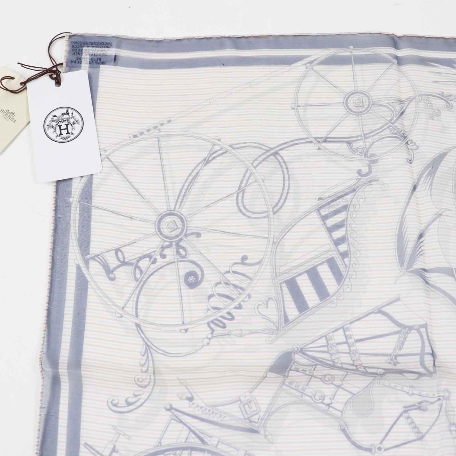 Hermes Gavroche 45 Voitures Enequilibre Elaborate Carriage 100 Silk Scarf Navy