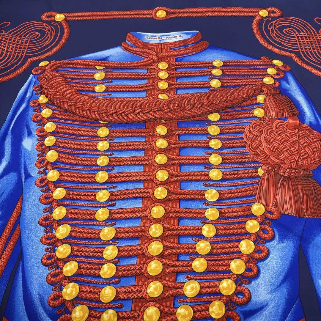 Hermes Kare 90 Scarf Brandenburg Ornament Navy Silk Twill 1Q32