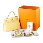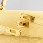 The Hermès Kelly 25 Jaune Poussin is a soft yellow color, also known as “Yellow chic”. This bright hue has a slight green undertone, adding a fresh and sophisticated touch to any wardrobe. Hermès crafted this Kelly bag from Epsom leather, a leather known for its lightweight and durable qualities that last for years. Gold-tone hardware complements the yellow leather, adding a warm and sophisticated touch. This handbag, designed by Sellier, gives Kelly 25 a structured silhouette with clear lines and sharp corners, making it ideal for both everyday use and special occasions. This bag is in stock and ready to ship. If you have any questions about purchasing, please feel free to contact us for more information.