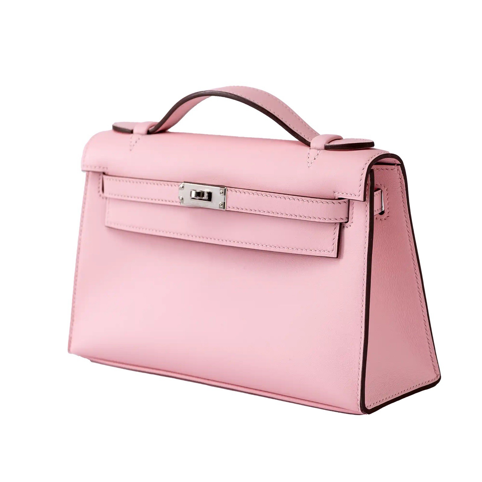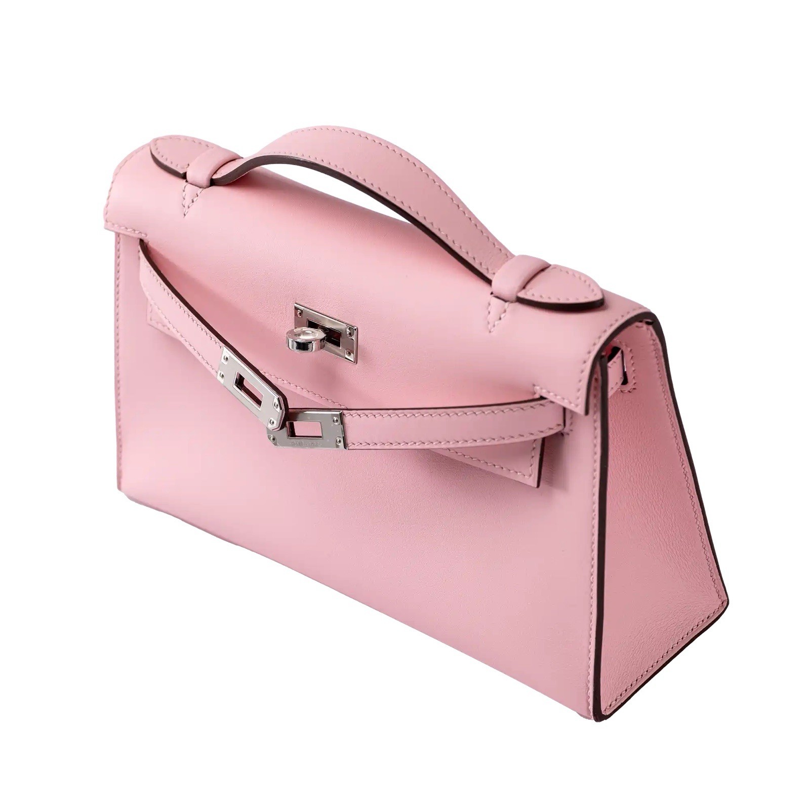 2022 Unworn The Hermes Mini Kelly Pochette in Rose Sakura Swift leather is a stunning and elegant bag. Its soft pink color and smooth Swift leather make it a timeless piece, while the palladium hardware adds a modern touch. With its signature Kelly turn-lock closure and top handle, it’s perfect for both day and evening events.