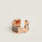 Ear cuff Madame calfskin. The Olympe ear cuff is designed to adapt to pierced or non-pierced ears. It attaches onto your ear through the all-inclusive opening. Each ear cuff is sold individually. Made in France Metallic finish: Rose gold plated Diameter: 1.6 cm | Width: 0.8 cm | Weight of the ear cuff: 4 g
