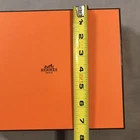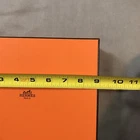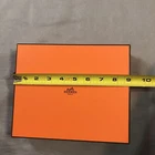 Hermes Empty Box 9x7x2 Inch Orange Ribbon Inlay Gift Storage Box has minor signs of wear. Please see pictures. Very good condition!