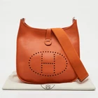 Our eBay Store About Us Contact Us Add to Favorite Sellers Hermes Orange Taurillon Clemence Leather Evelyne III GM Bag Embrace timeless elegance with this stunning orange leather Evelyne III GM, crafted in France by expert artisans. The beautiful Clemence texture radiates sophistication, while the suede interior provides a soft touch of luxury. Perfectly proportioned for modern life, its adjustable shoulder strap offers versatile styling options. Product Details Brand Hermes Includes Original Dustbag Certified by The Luxury Closet This item has gone through a detailed authentication process overseen by our experts. We offer a lifetime guarantee of authenticity on all our items. How We Check The in-house team of experts at The Luxury Closet is highly trained to verify the authenticity and the condition of the luxury products. They ensure that only 100% authentic items are put on sale.The evaluation process is unique with its own mix of assessment criteria and differs according to the category. Each item is evaluated based on the following combination of hallmarks, hardware, stitching, symmetry, material, craftsmanship, stamping, codes, hologram stickers, and packaging. Our authenticators also check if the items have been modified or amended (e.g., aftermarket diamonds, replaced batteries, repaired bags, etc.) Please note that this handbag may have a perfume scent, as it was stored and packaged in Dubai where such fragrances are commonly used. International Buyers Import duties, taxes and charges are not included in the item price. These charges are the buyers responsibility. Please check with your country’s customs office to determine what these additional cost will be prior to buying.