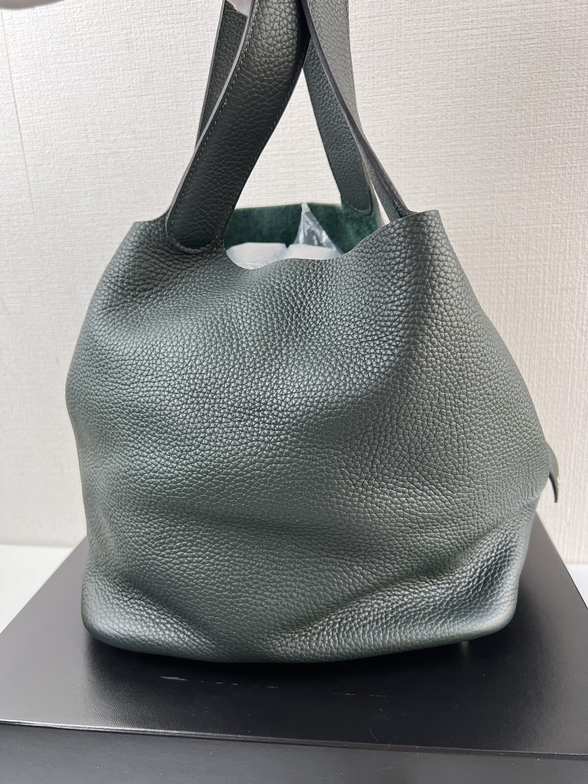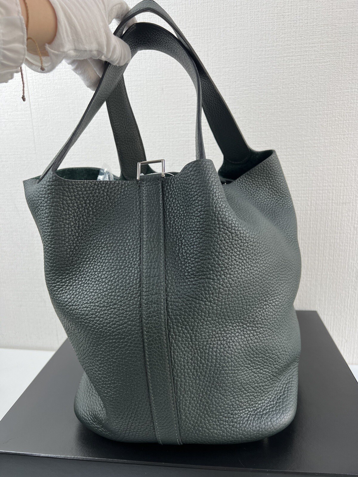 ID 59514379 【SIZE】 width: 26 x 20 x 26 cm 【CONDITION】 Condition rank:A Color:Green Inside : ◎ Outside:◎ Smell: - Metal:◎ Chain : ◎ ☆Evaluation ◎=4, 〇=3, △=2, ×=1 * This is a second hand bag, therefore there are some wear and smell. Please check a product carefully before purchasing. Brand : Hermes Material:Leather Pocket : One normal pocket, one fastner pocket Accessories:dustbag/lock and keys Authenticity card:Unavailability Serial seal : Available