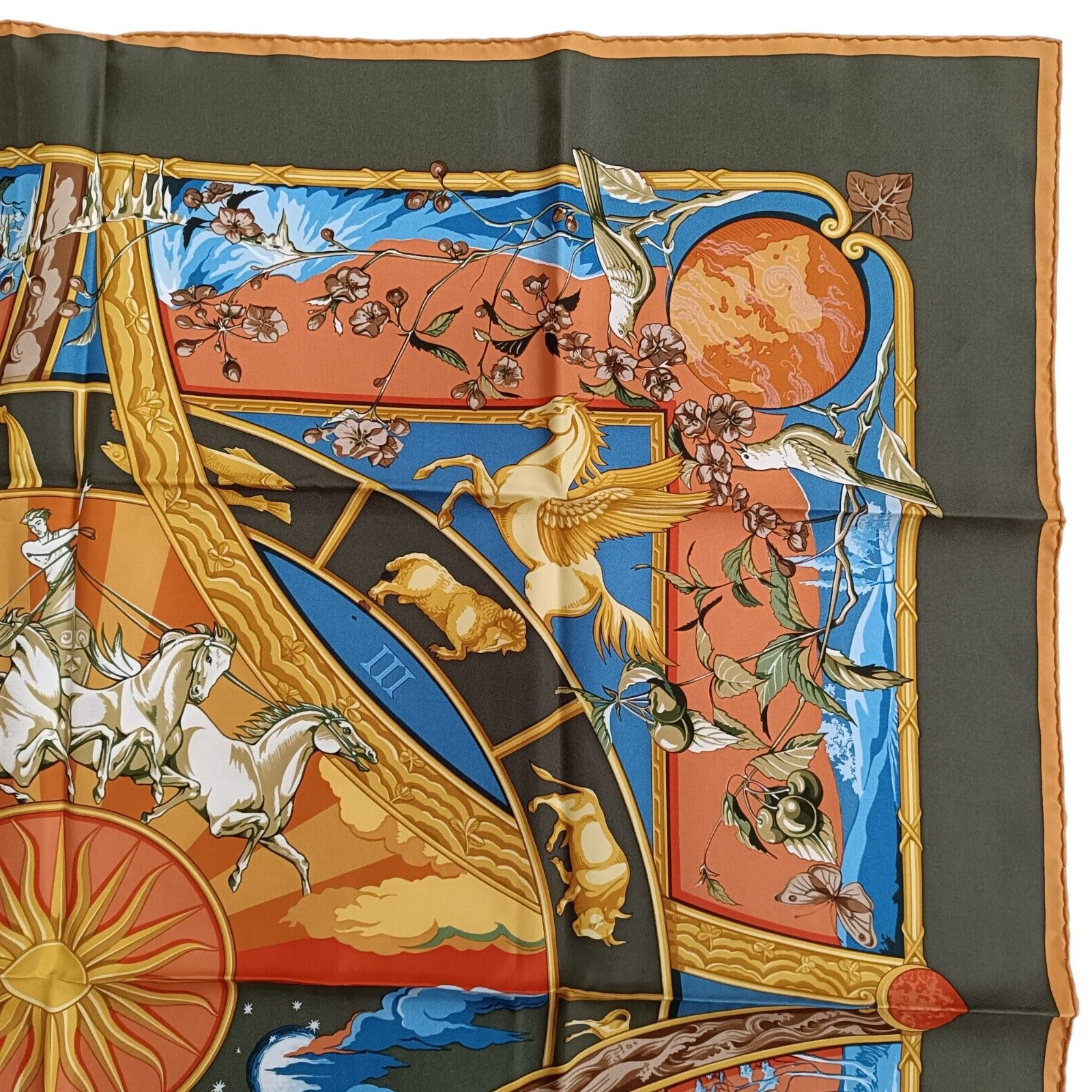 Hermes "COSMOS" Carre 90 Silk 100% Scarf Vintage Rare Cleaned