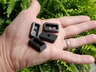This is a set of replacement feet for *I think all* Hermes Rocket, Baby, and Featherweight typewriters. I believe these have now been tested on all variants of these machines . The older style feet (1950 - 1963) were designed based on my 1954 Hermes Rocket (see photos), and later adjusted to universally fit older ones based on my 1938 Baby. These have been installed on quite a few machines since then without any issues, with the Featherweight recently confirmed as well. There are two different styles of Hermes Baby/Rocket feet. The older machines use small round feet, which I offer in either black or gray depending on your taste. Later machines starting in about 1963 use completely different rectangular feet that require hardware both inside and outside the machine to install, be sure you have your screws, rectangular washers, and internal threaded clips that the screw must mate with. The older round feet (Choose "Midnight Black" or "Steel Gray") must push through about 8-9mm holes in the bottom and use no screws . Depending on your machine, installation can be a little more finnicky, but if you push one edge in first, then twist while pushing down, then hold it there while pushing in the bulging part and pushing down, rinse and repeat...eventually it goes in, and stays in! By the way, I did this without removing the case bottom. Getting the old decayed rubber out required a tweezers and patience, that was harder than installation. The newer rectangular feet ("Late Model Black") are very easy to install as long as the threaded clips inside the machine aren't loose or missing--be sure to not bang the machine around once you remove the screws on the feet. In fact, please replace these one at a time, just remove the screw, remove the metal washer from inside the old foot, place the washer and then screw into the new foot, place the foot on the machine and screw it in place. Simple. These are improved feet using modern 3D Printing techniques and materials, I think they look and function better than the original rubber ever could have, and will hopefully last a lot longer! On my machine, and every single machine I saw in photos, the original feet had decayed into thin brittle uselessness, these replacements should cushion typing and grip the table very well. Please look closely at the photos to be sure these will fit your machine. The foot design looks simple but has extremely tight tolerances. The case is less than 1mm thick, and the original feet were about 2mm thick inside and outside, and on my machine with the metal machine frame resting directly on the inside of the feet (and felt). You can't really 3D print this thin shape, so I came up with this design (see photos) with a flat bulb on top which you can pretty easily squeeze through the hole, and then it expands to grip the hole and stay put. It is taller than 2mm inside, but hollow, so the machine can compress it to mount perfectly, suspended on the hollow bulbs like shock absorbers. For the older machines, you *may* need to remove the machine from the case to install the feet. If so, just remove the obvious screws around the outside perimeter, then lift it out (it may seem stuck in place, but that's just the old feet sticking to the frame). They seem like they won't fit, but as long as the holes are about 8-9mm they will, the trick is to sort of screw it clockwise pushing in, keep pushing, and then reverse directions once or twice and it should pop right in. The bottom shape is designed to resist getting pulled back out again accidentally. I designed these to be nearly an identical replacement, but with the advantages of modern technology we can engineer materials that were previously impossible. I printed with NinjaFlex Gray TPU (https://ninjatek.com/ninjaflex/), which is nearly indestructible in ordinary use (but a knife or scissors will cut it, just like rubber!), flexible, and pretty gripping on most surfaces. I printed these with a complex infill (with a variable gyroid and hollow fill structure) for a balance between good friction on the table, tight fit on the machine and shock absorption. These look and function much like the original, but should last much longer and be far more durable. Some people may prefer the original dull rubber look, but I actually think these have superior look and performance compared to rubber. I designed these for my own Hermes Rocket. This continues my experiment to see if it's worth my time to make some more for the community. Please ignore other's marketing claims that 3D printed feet have no grip, or that their feet are more "professional". Look at my reviews, these are beautiful and amazing typewriter feet being bought by collectors and dealers alike, I'm regularly told my feet are the best. PS: Ebay's volume discount display is a bit confusing, each purchase is a SET OF FOUR feet in the selected color , so picking "1" is one set of 4; "2" is 2 sets of 4 (8), etc. ** PSS: Typewriter and other props not included! No other screws or mounting hardware are needed and are not included. Compatibility Info: Your responsibility, please don't order unless you checked! Please read the above closely to determine if these fit your machine.