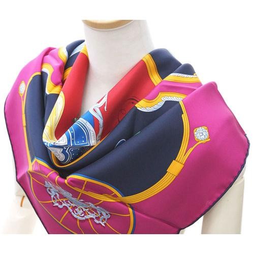 Hermes Scarf H001573S46 Carre90 Silk 90Cm 90 Springs Fuchsia Pink Marine