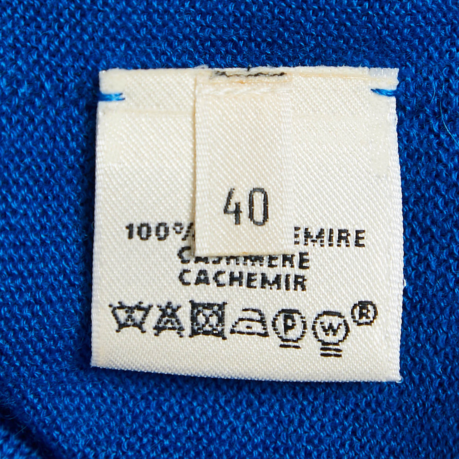 Winters and cardigans go hand in hand. Tailored from quality fabrics, this pretty cardigan features a catchy hue, a flattering sleeve length, and a comfy fit.Certified by The Luxury Closet - This item has gone through a detailed authentication process overseen by our experts. We offer a lifetime guarantee of authenticity on all our items. Import duties, taxes and charges are not included in the item price. These charges are the buyers responsibility. Please check with your country’s customs office to determine what these additional cost will be prior to buying. Our eBay Store About Us Contact Us Add to Favorite Sellers Hermes Blue Cashmere Button Front Cardigan M $500.5 Winters and cardigans go hand in hand. Tailored from quality fabrics, this pretty cardigan features a catchy hue, a flattering sleeve length, and a comfy fit. Product Details Brand Color Blue Dimensions Material Cashmere Size M Outsole Width Outsole Length Heel Height Includes The Luxury Closet Packaging Certified by The Luxury Closet This item has gone through a detailed authentication process overseen by our experts. We offer a lifetime guarantee of authenticity on all our items. How We Check The in-house team of experts at The Luxury Closet is highly trained to verify the authenticity and the condition of the luxury products. They ensure that only 100% authentic items are put on sale.The evaluation process is unique with its own mix of assessment criteria and differs according to the category. Each item is evaluated based on the following combination of hallmarks, hardware, stitching, symmetry, material, craftsmanship, stamping, codes, hologram stickers, and packaging. Our authenticators also check if the items have been modified or amended (e.g., aftermarket diamonds, replaced batteries, repaired bags, etc.) International Buyers Import duties, taxes and charges are not included in the item price. These charges are the buyers responsibility. Please check with your country’s customs office to determine what these additional cost will be prior to buying.
