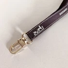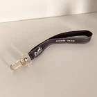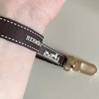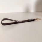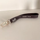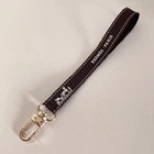 Hermes ribbon wristlet strap key holder. Makes a great attachment for a wallet. Authentic Hermes ribbon on a soft gold hardware clasp. 6.5 inches long measured flat. Inner circumference is 10 inches so it’ll fit over all wrists.