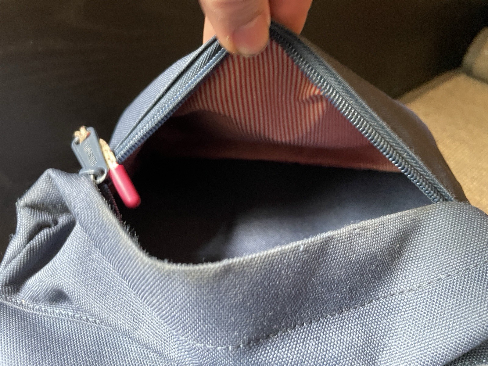 please note i removed the hershels label when I first purchased the backpack (personal preference) also there are some scuffs along the bottom of the backpack as well as by the zippers..I think it will come off with s wash. There is also a tiny tear at the top by one of the straps. Aside from that the bag is in excellent condition.