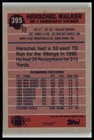This 1991 Topps sports trading card features Herschel Walker, a former NFL player for the Minnesota Vikings. The card is a part of the base set and has the card number 395. It is a great addition for any football fan or sports trading card collector. The card is in excellent shape and has been well-preserved over the years. It is a perfect opportunity to own a piece of NFL history. Don't miss out on this chance to add this 1991 Topps #395 Herschel Walker trading card to your collection.