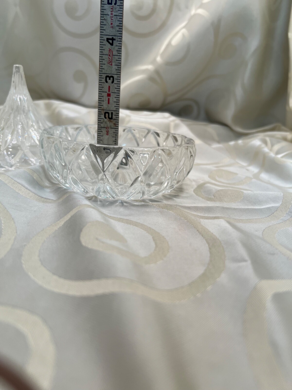 $ 7.26VTG 24% Lead Crystal Candy Dish with Finial Lid Cut Glass Footed Heavy 9 Inch Tall