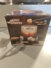 Get ready for some delicious s'mores with this Hershey's S'mores Maker. This kit includes a ceramic cooking plate with flames design and a Sterno cooking fuel holder. It is perfect for indoor and outdoor use and makes a great addition to any camping or backyard party. The kit also includes a roasting fork for roasting marshmallows and a tray for holding all your s'mores ingredients. With this s'mores maker, you can easily make a variety of s'mores using Hershey's chocolate bars, graham crackers, and marshmallows. The kit is easy to use and clean, and it is designed to provide a fun cooking experience for the whole family. So, get ready to create some sweet memories with your loved ones.