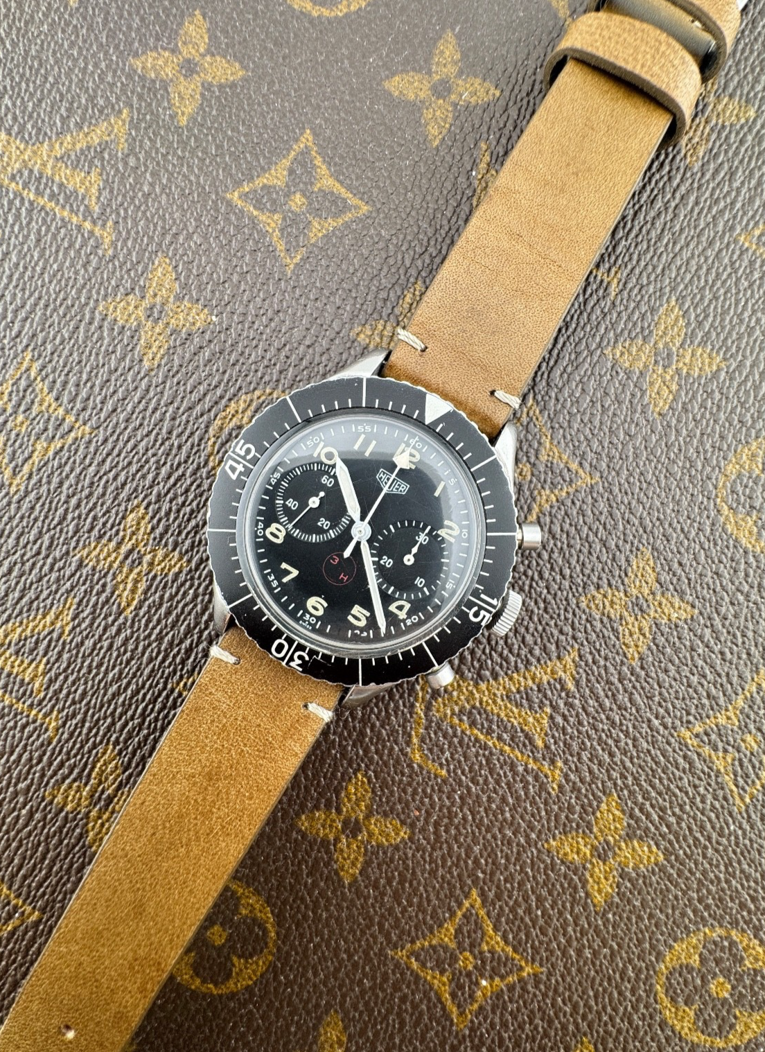 PROPONIAMO; -Marca: HEUER BUNDESWEHR MILITARY CHRONOGRAPH -Cassa: ACCIAIO INOX CLAMSHELL 43MM , FONDELLO CON MATRICOLA -Movimento :ORIGINALE CALIBRO VALJOUX 230 COEVO IN OGNI SUA PARTE -Vetro:PLEXY -Corona:ORIGINALE -Ghiera: GIREVOLE ORIGINALE -Tasti: ORIGINALI A POMPA -Quadrante: NERO ORIGINALE T-SWISS-T -Lancette: ORIGINALI SMALTO BIANCO E TRIZIO -Cinturino/Bracciale: FATTO A MANO MADE IN ITALY NUOVO -Scatola e documenti: NOSTRA POCHETTE IN VELLUTO COMPRESA -Condizioni : OTTIME -Revisionato:SI -Uomo/donna/unisex:UOMO PER QUALSIASI DUBBIO CONTATTATEMI ,RISPONDEREMO IL PRIMA POSSIBILE