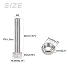 Document APPLY TO - Can be used in house construction and maintenance, machinery assembly, home furniture and appliance, DIY handmade project, etc.SPECIFICATION:Material: 304 Stainless SteelThread Size: M6x40mmThread Pitch: 1mmHex Head Size: 11.3x4mm/0.44"x0.16"(W*T)Nut Size: 11x5mm/0.43"x0.2"(W*T)Flat Washer Size: 11.8x1.4mm/0.46"x0.06"(OD*T)Lock Washer Size: 9.6x1.6mm/0.38"x0.06"(OD*T)QUANTITY INCLUDED - 10sets x Bolts, Nuts, Flat & Lock Washers KitsADVANTAGE - Made of 304 stainless steel material which is durable and sturdy. It is anti-rust, anti-corrosion and can be fastened for a long time.Note: Please confirm the size of each component before buying it. Hex Head Screws Bolts, Nuts, Flat & Lock Washers Kits (M6x40mm) 10Sets APPLY TO - Can be used in house construction and maintenance, machinery assembly, home furniture and appliance, DIY handmade project, etc. SPECIFICATION: Material: 304 Stainless Steel Thread Size: M6x40mm Thread Pitch: 1mm Hex Head Size: 11.3x4mm/0.44"x0.16"(W*T) Nut Size: 11x5mm/0.43"x0.2"(W*T) Flat Washer Size: 11.8x1.4mm/0.46"x0.06"(OD*T) Lock Washer Size: 9.6x1.6mm/0.38"x0.06"(OD*T) QUANTITY INCLUDED - 10sets x Bolts, Nuts, Flat & Lock Washers Kits ADVANTAGE - Made of 304 stainless steel material which is durable and sturdy. It is anti-rust, anti-corrosion and can be fastened for a long time. Note: Please confirm the size of each component before buying it. Hot Item Payment 1.We accept eBay payment . 2.Payment must be received within 7 business days of auction closing. Shipping 1.We ship to your eBay or Paypal address. Please make sure your eBay and Paypal address is correct before you pay. 2.Items will be shipped within 1-3 business day when we received payment. 3.Delivery time depends on destination and other factors. Description Policy Hex Head Screws Bolts, Nuts, Flat & Lock Washers Kits (M6x40mm) 10Sets APPLY TO - Can be used in house construction and maintenance, machinery assembly, home furniture and appliance, DIY handmade project, etc. SPECIFICATION: Material: 304 Stainless Steel Thread Size: M6x40mm Thread Pitch: 1mm Hex Head Size: 11.3x4mm/0.44"x0.16"(W*T) Nut Size: 11x5mm/0.43"x0.2"(W*T) Flat Washer Size: 11.8x1.4mm/0.46"x0.06"(OD*T) Lock Washer Size: 9.6x1.6mm/0.38"x0.06"(OD*T) QUANTITY INCLUDED - 10sets x Bolts, Nuts, Flat & Lock Washers Kits ADVANTAGE - Made of 304 stainless steel material which is durable and sturdy. It is anti-rust, anti-corrosion and can be fastened for a long time. Note: Please confirm the size of each component before buying it. Hot Item Payment 1.We accept eBay payment . 2.Payment must be received within 7 business days of auction closing. Shipping 1.We ship to your eBay or Paypal address. Please make sure your eBay and Paypal address is correct before you pay. 2.Items will be shipped within 1-3 business day when we received payment. 3.Delivery time depends on destination and other factors.