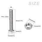 Document APPLY TO - Can be used in house construction and maintenance, machinery assembly, home furniture and appliance, DIY handmade project, etc.SPECIFICATION:Material: 304 Stainless SteelThread Size: M8x45mmThread Pitch: 1.25mmHex Head Size: 13x5mm/0.51"x0.2"(W*T)Nut Size: 12.5x5.5mm/0.49"x0.22"(W*T)Flat Washer Size: 15.5x1.5mm/0.61"x0.06"(OD*T)Lock Washer Size: 12.5x2mm/0.49"x0.08"(OD*T)QUANTITY INCLUDED - 10sets x Bolts, Nuts, Flat & Lock Washers KitsADVANTAGE - Made of 304 stainless steel material which is durable and sturdy. It is anti-rust, anti-corrosion and can be fastened for a long time.Note: Please confirm the size of each component before buying it. Hex Head Screws Bolts, Nuts, Flat & Lock Washers Kits (M8x45mm) 10Sets APPLY TO - Can be used in house construction and maintenance, machinery assembly, home furniture and appliance, DIY handmade project, etc. SPECIFICATION: Material: 304 Stainless Steel Thread Size: M8x45mm Thread Pitch: 1.25mm Hex Head Size: 13x5mm/0.51"x0.2"(W*T) Nut Size: 12.5x5.5mm/0.49"x0.22"(W*T) Flat Washer Size: 15.5x1.5mm/0.61"x0.06"(OD*T) Lock Washer Size: 12.5x2mm/0.49"x0.08"(OD*T) QUANTITY INCLUDED - 10sets x Bolts, Nuts, Flat & Lock Washers Kits ADVANTAGE - Made of 304 stainless steel material which is durable and sturdy. It is anti-rust, anti-corrosion and can be fastened for a long time. Note: Please confirm the size of each component before buying it. Hot Item Payment 1.We accept eBay payment . 2.Payment must be received within 7 business days of auction closing. Shipping 1.We ship to your eBay or Paypal address. Please make sure your eBay and Paypal address is correct before you pay. 2.Items will be shipped within 1-3 business day when we received payment. 3.Delivery time depends on destination and other factors. Description Policy Hex Head Screws Bolts, Nuts, Flat & Lock Washers Kits (M8x45mm) 10Sets APPLY TO - Can be used in house construction and maintenance, machinery assembly, home furniture and appliance, DIY handmade project, etc. SPECIFICATION: Material: 304 Stainless Steel Thread Size: M8x45mm Thread Pitch: 1.25mm Hex Head Size: 13x5mm/0.51"x0.2"(W*T) Nut Size: 12.5x5.5mm/0.49"x0.22"(W*T) Flat Washer Size: 15.5x1.5mm/0.61"x0.06"(OD*T) Lock Washer Size: 12.5x2mm/0.49"x0.08"(OD*T) QUANTITY INCLUDED - 10sets x Bolts, Nuts, Flat & Lock Washers Kits ADVANTAGE - Made of 304 stainless steel material which is durable and sturdy. It is anti-rust, anti-corrosion and can be fastened for a long time. Note: Please confirm the size of each component before buying it. Hot Item Payment 1.We accept eBay payment . 2.Payment must be received within 7 business days of auction closing. Shipping 1.We ship to your eBay or Paypal address. Please make sure your eBay and Paypal address is correct before you pay. 2.Items will be shipped within 1-3 business day when we received payment. 3.Delivery time depends on destination and other factors.