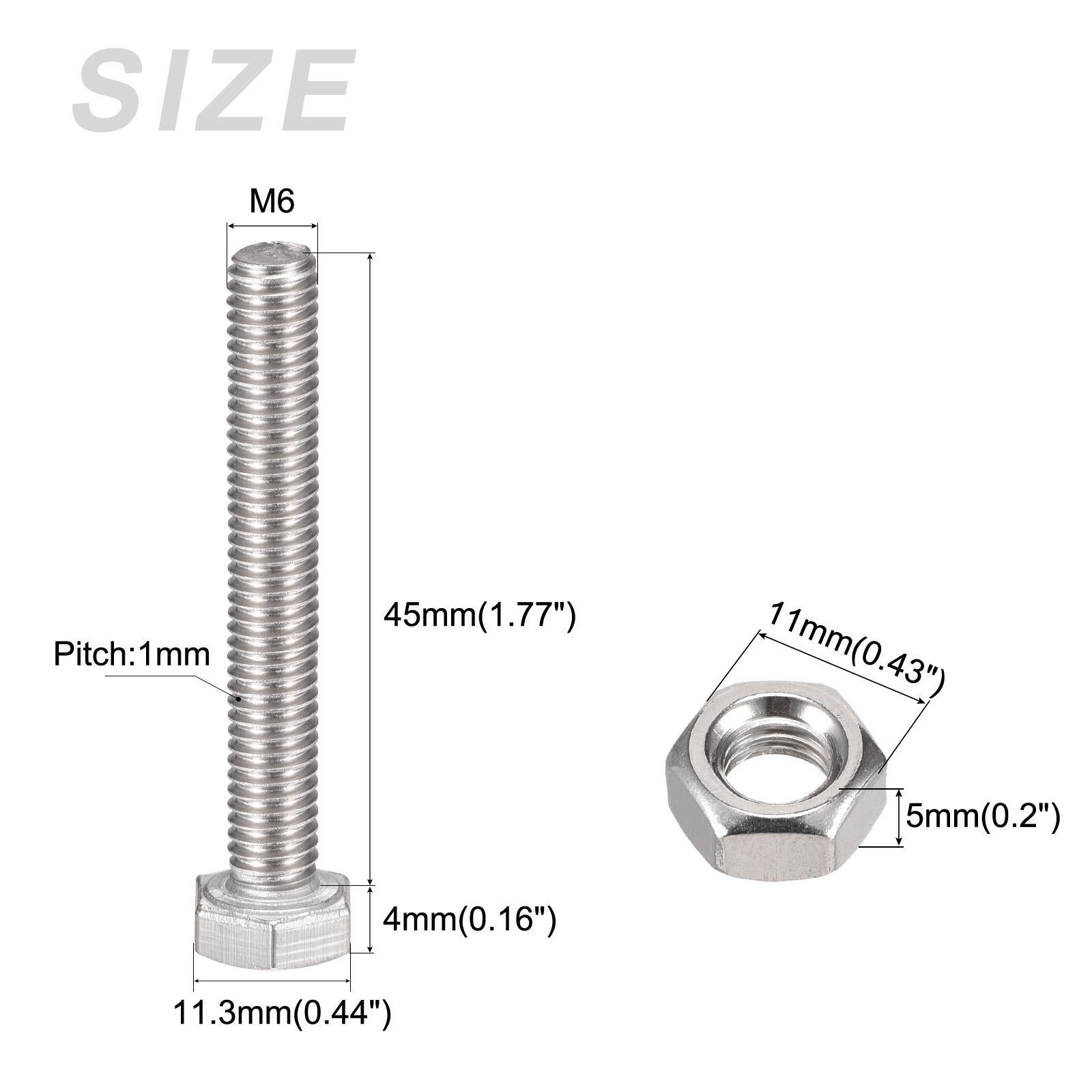 Document APPLY TO - Can be used in house construction and maintenance, machinery assembly, home furniture and appliance, DIY handmade project, etc.SPECIFICATION:Material: 304 Stainless SteelThread Size: M6x45mmThread Pitch: 1mmHex Head Size: 11.3x4mm/0.44"x0.16"(W*T)Nut Size: 11x5mm/0.43"x0.2"(W*T)Flat Washer Size: 11.8x1.4mm/0.46"x0.06"(OD*T)Lock Washer Size: 9.6x1.6mm/0.38"x0.06"(OD*T)QUANTITY INCLUDED - 6sets x Bolts, Nuts, Flat & Lock Washers KitsADVANTAGE - Made of 304 stainless steel material which is durable and sturdy. It is anti-rust, anti-corrosion and can be fastened for a long time.Note: Please confirm the size of each component before buying it. Hex Head Screws Bolts, Nuts, Flat & Lock Washers Kits (M6x45mm) 6Sets APPLY TO - Can be used in house construction and maintenance, machinery assembly, home furniture and appliance, DIY handmade project, etc. SPECIFICATION: Material: 304 Stainless Steel Thread Size: M6x45mm Thread Pitch: 1mm Hex Head Size: 11.3x4mm/0.44"x0.16"(W*T) Nut Size: 11x5mm/0.43"x0.2"(W*T) Flat Washer Size: 11.8x1.4mm/0.46"x0.06"(OD*T) Lock Washer Size: 9.6x1.6mm/0.38"x0.06"(OD*T) QUANTITY INCLUDED - 6sets x Bolts, Nuts, Flat & Lock Washers Kits ADVANTAGE - Made of 304 stainless steel material which is durable and sturdy. It is anti-rust, anti-corrosion and can be fastened for a long time. Note: Please confirm the size of each component before buying it. Hot Item Payment 1.We accept eBay payment . 2.Payment must be received within 7 business days of auction closing. Shipping 1.We ship to your eBay or Paypal address. Please make sure your eBay and Paypal address is correct before you pay. 2.Items will be shipped within 1-3 business day when we received payment. 3.Delivery time depends on destination and other factors. Description Policy Hex Head Screws Bolts, Nuts, Flat & Lock Washers Kits (M6x45mm) 6Sets APPLY TO - Can be used in house construction and maintenance, machinery assembly, home furniture and appliance, DIY handmade project, etc. SPECIFICATION: Material: 304 Stainless Steel Thread Size: M6x45mm Thread Pitch: 1mm Hex Head Size: 11.3x4mm/0.44"x0.16"(W*T) Nut Size: 11x5mm/0.43"x0.2"(W*T) Flat Washer Size: 11.8x1.4mm/0.46"x0.06"(OD*T) Lock Washer Size: 9.6x1.6mm/0.38"x0.06"(OD*T) QUANTITY INCLUDED - 6sets x Bolts, Nuts, Flat & Lock Washers Kits ADVANTAGE - Made of 304 stainless steel material which is durable and sturdy. It is anti-rust, anti-corrosion and can be fastened for a long time. Note: Please confirm the size of each component before buying it. Hot Item Payment 1.We accept eBay payment . 2.Payment must be received within 7 business days of auction closing. Shipping 1.We ship to your eBay or Paypal address. Please make sure your eBay and Paypal address is correct before you pay. 2.Items will be shipped within 1-3 business day when we received payment. 3.Delivery time depends on destination and other factors.
