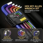 【Sturdy Allen Key Set】Our allen wrenches set made from hardened chrome vanadium and S2 alloy steel for rust resistance and long-lasting strength. The set includes color-coded, clearly marked sizes for easy identification 【Ball Head Design】The ball head design of the hex key set allows up to 25° entry for easy access in tight spaces. Surface oxidation treatment for corrosion resistance 【Sizes of AMTOVL' Hex Wrenches】Includes metric wrenches (1.5, 2, 2.5, 3, 4, 5, 6, 8, 10 mm), covering common sizes for various tasks. Perfect for installing or removing socket cap screws in automobiles, furniture, bikes, and equipment 【Widely Used】The ball end allen key set has clear visible size mark for fast size selection, good for diy repairs of electronics, bikes, electrical work, machinery, automobile and motorcycle 【Distinctive Color Coding】Every allen key heat-treated, chrome-plated, and uniquely color-coded for easy size identification. The textured, slip-resistant surface ensures a secure grip, even with oily hands. A perfect present for any tool enthusiast Product Description Specifications of AMTOVL's 9PCS Metric Allen Key Set Material Chrome Vanadium Steel + Heat-Treated S2 Steel Size 1.5, 2, 2.5, 3, 4, 5, 6, 8, 10MM Color Multi-color Head Style Hex Finish Type Powder Coated Packed 9PCS Hex Key Set Included Components 9PCS Hex Key Set