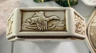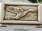 This vintage hexagon trinket box features a beautiful goose design, perfect for collectors of all ages. Crafted from resin/ pottery this hexagon lidded box is a unique addition to any collection. The box has been previously enjoyed and shows signs of use, making it a great choice for those seeking authentic vintage pieces. No flaws The box was made in an unknown Brazil, by Cermante for Avon, label printed/designed on bottom. It is a great piece to add to any collection or to use as a candy box. Returns accepted within 30 days, buyer pays return shipping
