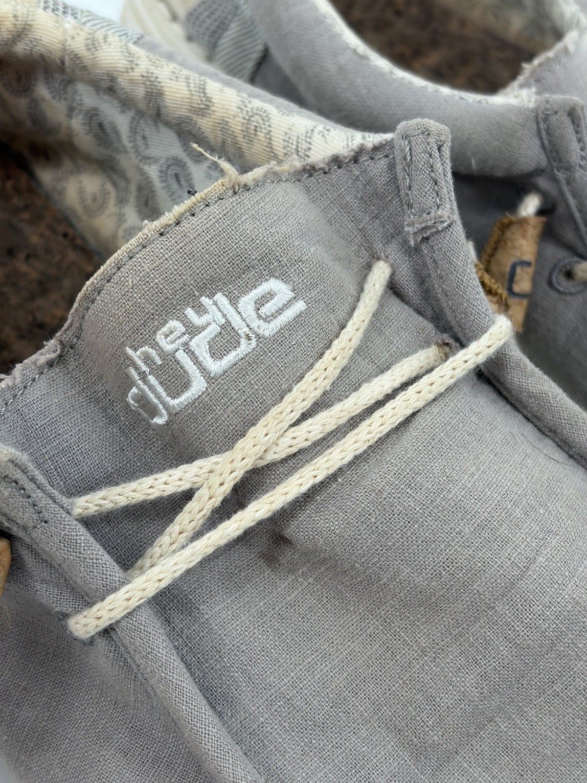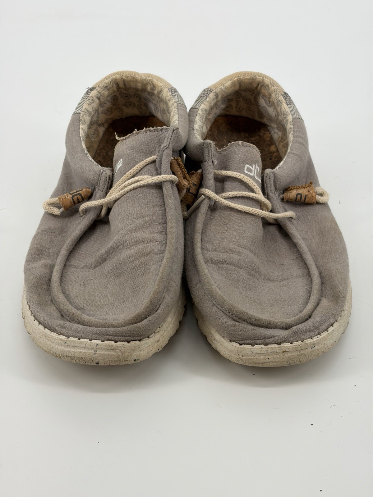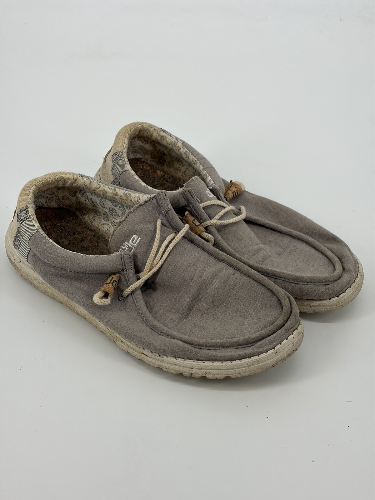 Hey Dude Wally Linen Shoes – Natural Grey – Men’s Size 11 (EU 44) Condition: Pre-owned. These have plenty of life left but show clear signs of wear. Uppers have creasing and some fraying at the edges. Insoles show use. Outsoles have dirt and wear from normal use. No major damage or structural issues. Model: Wally Linen Color: Natural Grey Size: Men’s US 11 / EU 44 / UK 10 SKU: 110793297 Features • Lightweight linen upper • Easy slip-on design with elastic laces • Cushioned cork-style insole • Flexible, lightweight outsole • Casual everyday comfort Notes • Please review all photos—they are part of the description. • Clean, smoke-free item. • Pre-owned pair priced to move.