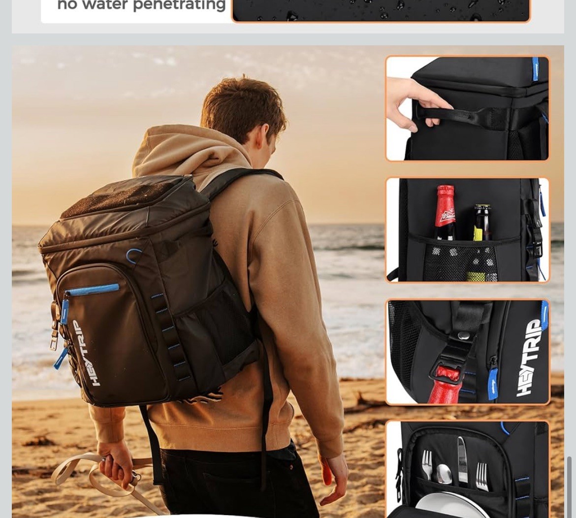 Heytrip Backpack Cooler 36/54 Cans Insulated Waterproof Cooler Bag for 20 Hours Cold Retention, Leak-Proof Camping Cooler with Multi-Compartments