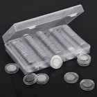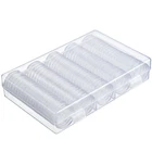 100 Pieces coin capsules round 30 mm plastic coin holder case with storage organizer box for coin collection supplies Features of small round coin case: Size (Dia. x Depth): Outside size: 33 x 5. 6 mm; Inside size: 30 x 3 mm, can hold coins whose diameter is not larger than 30 mm. Durable: Constructed from thickening plastic, durable and reusable round coin cases. Good seal: Resistance to oxidation and dust-proof, useful coin collecting protector. High transparent: Clear plastic coin collecting holders, easy to see items inside, facilitate to coin view, display and exchange. Easy to use: Crescent opening design, makes these coin collecting holders convenient to open. With storage box: Size (LWH): about 7.3 x 4.6 x 1.5 inch/ 18.5 x 11.8 x 3.8 cm, enough space for you to stock your coins. Material: plastic; Color: clear Usage: Clear plastic coin container supplies are great gift for friend who is loving coins collection, helpful for protecting coins from dust and corrosion. Package includes: 100 x Clear round coin collection capsules 1 x Storage box Measurements (diameter x depth): clear round coin holder inside size is 30 x 3 mm, outside size is 33 x 5. 6 mm; Can hold not bigger than 30 mm coins, commemorative coins, please check size before purchasing Material: made of thickened plastic, durable coin capsules; Feature: safety round corner design, smooth to touch and hold; High transparent: easy to see things inside Easy of Opening and Ideal Seal: the cover and base snap together firmly, dust-proof and antioxidative, coin capsule holders function as coins' protectors; Crescent opening design: convenient to use With a plastic storage box: size is about 7.3 x 4.6 x 1.5 inch/ 18.5 x 11.8 x 3.8 cm, enough space for you to tidily stock 100 pieces coin capsule cases Great gift: clear coin organizers facilitate to coin storage, view and exchange, practical gift for coin collectors to store and protect his/ her favorite coins