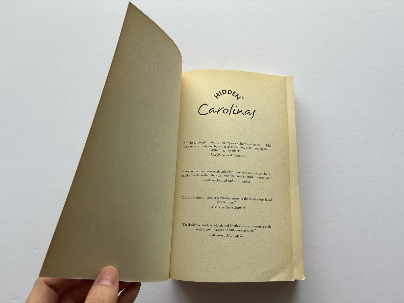 Explore the hidden gems of the Carolinas with this comprehensive travel guide. Perfect for adventurers seeking weekend getaways, scenic drives, and outdoor activities. Published in 2001 by Ulysses Press, this trade paperback features 453 pages filled with maps and illustrations. The binding is firm, and the pages are crisp and clean, showcasing the beauty of the Carolinas. Only minor cover wear is present, typical for a book of this age. Only one in stock. Once it’s gone, it’s gone. Ships fast, packed with care. Click 'Buy Now' to make it yours. ---- ✨ Details ✨ Author: Stacy Ritz Publisher: Ulysses Press Year: 2001 Format: Trade Paperback Length: 453 pages Size: 8"x5"x1" ✨ Condition ✨ Very good. Minor cover wear, no staining, no markings, no highlighting, no tears, no yellowing. ✨ Disclaimer ✨ This book is sold AS IS. There are no refunds. Please review the images carefully to ensure you know what you're buying.