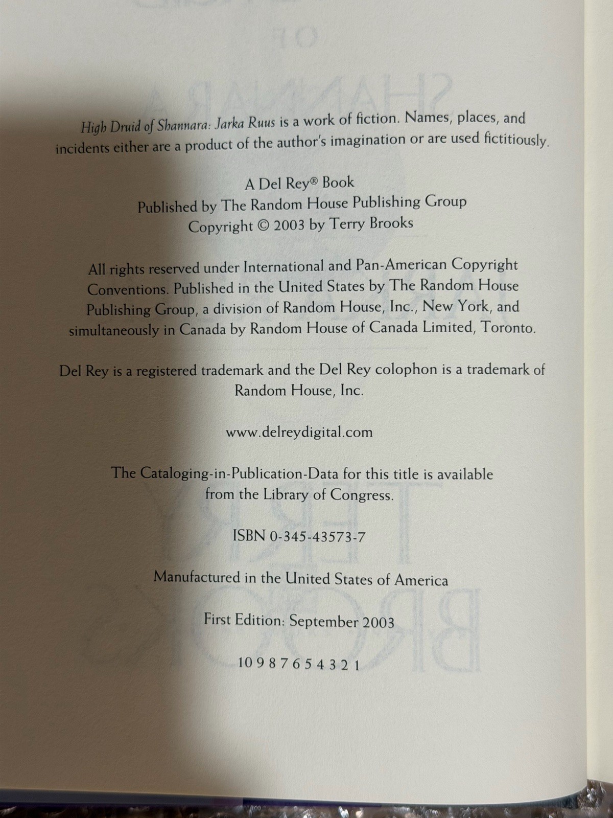 The product is a *BRAND NEW* 3-Book Trilogy titled "High Druid Of Shannara" by Terry Brooks. The books included are: “Straken,” “Tanequil,” & “Jarka Ruus,” and are First Edition Hardcover Copies. The High Druid of Shannara series are published by Del Rey Books in the United States. The fantasy fiction series falls under the genre of science fiction/fantasy, with the narrative following the story of a high druid in a fictional world. The books are written in English and are ideal for fans of Terry Brooks and those interested in immersive fantasy storytelling. Item Specific: -This book set is **BRAND NEW-UNREAD- FIRST EDITION-HARDCOVER VOLUMES IN PRISTINE-CONDITION** By Del Ray -The Books *PICTURED* are the *EXACT ONES YOU WILL RECEIVE*