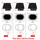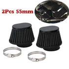 Application: Universal Fitment. Please double check the size before you order. Specification: 100% quality assurance tested, more responsive, less expensive, easier to install. There are no changes to the system necessary. High airflow with excellent filtration. Maintenance interval; up to 80,000 km before cleaning is required, depending on the road use. Catch dust better than an oil soaked filter and to be run DRY. We got many types of air filter, not only the size, contact us freely and get more information. Material & Color: Material: made of high quality Metal. Color: Black. Size:2.15”/55mm Package included: 2x Air Filter Kit. (100% Brand New Never Used Or Installed)