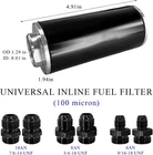 High Flow Inline Fuel Filter 100 Micron Cleanable 6AN 8AN 10AN Adapter Universal Item Description [Application] Universal fuel filter, includes an6, an8, an10 adapters for different size applications. [Material] Aluminum alloy fuel filter can and stainless steel filter element. [O-ring] The o-ring provides a tight seal for fittings and end caps. [Function] Can be used for filtering gasoline, diesel, E85, etc. Captures contaminant particles of 100 micron and above to protect the fuel system of the vehicle. [Feature] Removable design, easy to clean or replace filter element at regular time. Specifications Condition:100% Brand New Warranty: 90 Day Free Return:30 Day 100 Micron Fuel Filter 50mm Universal for AN6 AN8 AN10 fuel lines Material: Aluminium Alloy Body and Stainless Steel Filter Screen Color:Black Fitment For Honda, Subaru, Toyota, Hyundai, Mazda, Suzuki, Mitsubishi and other hydraulic transmitters. Package Included As pictures show FAQ: I purchased by mistake, how do I cancel the order? Please contact us ASAP. If the item has not been shipped out we can cancel the order for you. If the item was shipped out you can refuse the package and wait for the item to return to us. I received your item but it does not fit or is defective Please contact us so we can assist you on the matter. Buy with confidence Our quality is based on meeting the requirements of the manufacturer and improvement them in design problems manufacture. NOTE: (1)It would be highly appreciated if you might contact us first once you have any problems concerning the items. And you can expect all the issues would be resolved ASAP! (2)Please let us know before you send us the neutral/negative feedback that wont help to finish the issues. And I will definitely try my best to provide the best solutions which would meet our satisfactory! (3)According to the distance of the receipt address items would be sent from CA or NJ