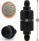 Universal -6AN Inline Fuel Filter High Flow 100 Micron Cleanable AN6 6AN Black Item Description 【Filter Impurities In The Tubing】 A Fuel Filter Is A Filter In The Fuel Line That Screens Out Dirt And Rust Particles From The Fuel, They Are Found In Most Internal Combustion Engines. 【Durable&Corrosion Resistant】 Features Include Anodized Billet Aluminum Body And End Caps For Durability And Resistance To Fluid Corrosion. Stainless Steel Mesh Screen And A Pleated Element For High Flow. 【Small Size & Easy to Removable】 Overall length is 3 inch and outside 1.21 inch,Fitting Size: -6 AN Male Inlet/Outlet,Very easy to disassemble and replace. 【Strong Tightness】 Traps Contaminants Before They Enter The Fuel Delivery System For Improved Engine Performance, Filter Assemblies Feature An O-Ring For Positive Sealing In High Pressure Applications. 【Quality Service】 We Value Your Shopping Experience And Strive To Offer A High-Quality Product And Service.When You Encounter Any Questions About The Product, You Can Contact Me As Soon As Possible, And I Will Answer It For You. Specifications Condition:100% Brand New Warranty: 90 Day Free Return:30 Day Color: Black Fitting Size: AN6 Easy installation Extremely long lasting life Fuel application : Gasoline, Alcohol Length: 3.5 inches Weight: 3.0 ounces Filter material : Stainless steel filter Wash reusable Package Included 1x 6AN Fuel Filters As pictures show FAQ: I purchased by mistake, how do I cancel the order? Please contact us ASAP. If the item has not been shipped out we can cancel the order for you. If the item was shipped out you can refuse the package and wait for the item to return to us. I received your item but it does not fit or is defective Please contact us so we can assist you on the matter. Buy with confidence Our quality is based on meeting the requirements of the manufacturer and improvement them in design problems manufacture. NOTE: (1)It would be highly appreciated if you might contact us first once you have any problems concerning the items. And you can expect all the issues would be resolved ASAP! (2)Please let us know before you send us the neutral/negative feedback that wont help to finish the issues. And I will definitely try my best to provide the best solutions which would meet our satisfactory! (3)According to the distance of the receipt address items would be sent from CA or NJ