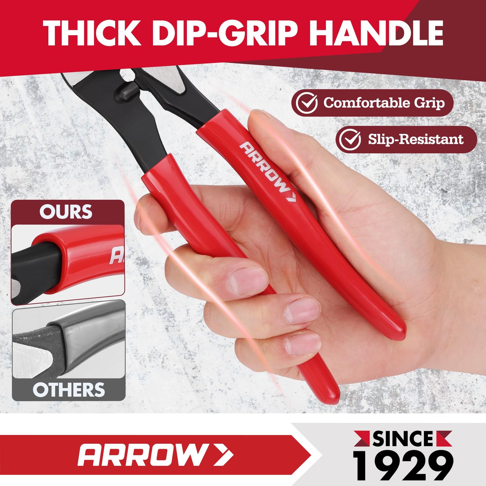 ARROW 9.5” Cable Cutter High Leverage, Wire Cutters Heavy Duty with Thick Dip-Grip Handle, CR-V Steel, Cutter Tool for 4/0 Aluminum, 2/0 Soft Wire, and 100PR 24AWG Communications Cable Sharp & Precise Cutting: The sharp cutting edges undergo special heat treatment, reaching a impressive hardness of HRC 63-65. This ensures clean, effortless cuts with precision every time Premium CR-V Construction: Built with high-strength CR-V steel, this cable cutter stands up to heavy-duty use without compromising on durability. The black oxide finish enhances resistance to wear and corrosion for long-lasting performance Effortless & Stable Operation: The cable cutting pliers feature a cold-riveted joint that keep the handles steady, eliminating unwanted wobbling. The high-leverage design increases cutting efficiency, requiring less effort with each cut Ergonomic Comfort Grip: The thickened dip-grip handle offers a firm yet comfortable grip, reducing hand strain during long hours of work Wide Cutting Range: Easily cuts through 4/0 aluminum, 2/0 soft copper, and 100-pair 24 AWG communications cable. Note: Not suitable for cutting steel wires or bike cables, as this may damage the cutter