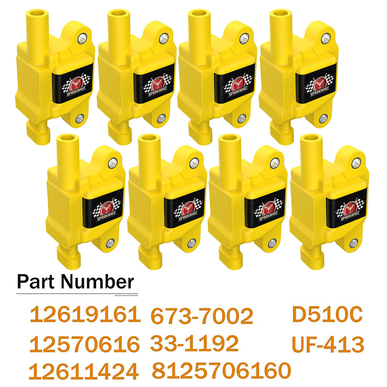 Description: Our ignition coils offer value without compromising quality. They can convert the power of your vehicle from 12 volts to more than 25,000 volts. Helps ensure proper engine performance, maximize fuel economy, minimize both tailpipe emissions and RFI electronic interference Helps avoid spark plug failure, drivability complaints, pre-ignition and detonation Feature: Color:Yellow Connector: 4 Pins Connector Gender: Female Terminal Gender: Male Terminal Type: Blade Voltage: 12V Part Numbers: 12570616, UF413, E893, D510C, UF-413, 12611424, 8125706160 Auto_bestchoice Ignition Coil & Spark Plug & Wire For Chevy Silverado GMC 5.3 6.0 6.2L V8 C1511 Description: Our ignition coils offer value without compromising quality. They can convert the power of your vehicle from 12 volts to more than 25,000 volts. Helps ensure proper engine performance, maximize fuel economy, minimize both tailpipe emissions and RFI electronic interference Helps avoid spark plug failure, drivability complaints, pre-ignition and detonation Feature: Color:Yellow Connector: 4 Pins Connector Gender: Female Terminal Gender: Male Terminal Type: Blade Voltage: 12V Part Numbers: 12570616, UF413, E893, D510C, UF-413, 12611424, 8125706160 12192195, 9748GG, 748GG, 12622553, 88862397, 12192192, 748UU, 12656210 Fitment: Fits the GM, Hummer, & Isuzu 8 cylinder engines: V8 4.8L, 5.3L, 6.0L, 8.1L Fits Square style Coil Does not fit round style: 2008-2008 Buick Allure 5.3L-V8 2008-2009 Buick LaCrosse 5.3L-V8 2006-2007 Buick Rainier 5.3L-V8 2006-2007 Cadillac CTS 6.0L-V8 2009-2015 Cadillac CTS 6.2L-V8 2007-2016 Cadillac Escalade 6.2L-V8 2009-2013 Cadillac Escalade 6.0L-V8 2007-2016 Cadillac Escalade ESV 6.2L-V8 2007-2013 Cadillac Escalade EXT 6.2L-V8 2010-2015 Chevrolet Camaro 6.2L-V8 2009-2012 Chevrolet Colorado 5.3L-V8 2005-2007 Chevrolet Corvette 6.0L-V8 2006-2013 Chevrolet Corvette 7.0L-V8 2008-2013 Chevrolet Corvette 6.2L-V8 2006-2009 Chevrolet Impala 5.3L-V8 2007-2007 Chevrolet Monte Carlo 5.3L-V8 2007-2013 Chevrolet Silverado 1500 5.3L-V8 2007-2013 Chevrolet Silverado 1500 4.8L-V8 2007-2013 Chevrolet Silverado 1500 6.0L-V8 2009-2013 Chevrolet Silverado 1500 6.2L-V8 2008-2016 Chevrolet Silverado 2500HD 6.0L-V8 2008-2016 Chevrolet Silverado 3500HD 6.0L-V8 2007-2014 Chevrolet Suburban 1500 5.3L-V8 2007-2009 Chevrolet Suburban 1500 6.0L-V8 2007-2013 Chevrolet Suburban 2500 6.0L-V8 2007-2015 Chevrolet Tahoe 5.3L-V8 2007-2009 Chevrolet Tahoe 4.8L-V8 2008-2009 Chevrolet Tahoe 6.2L-V8 2008-2013 Chevrolet Tahoe 6.0L-V8 2006-2008 Chevrolet Trailblazer 5.3L-V8 2006-2009 Chevrolet Trailblazer 6.0L-V8 2009-2012 GMC Canyon 5.3L-V8 2005-2009 GMC Envoy 5.3L-V8 2005-2006 GMC Envoy XL 5.3L-V8 2005-2005 GMC Envoy XUV 5.3L-V8 2007-2013 GMC Sierra 1500 5.3L-V8 2007-2013 GMC Sierra 1500 6.2L-V8 2007-2013 GMC Sierra 1500 4.8L-V8 2007-2013 GMC Sierra 1500 6.0L-V8 2008-2016 GMC Sierra 2500HD 6.0L-V8 2008-2015 GMC Sierra 3500HD 6.0L-V8 2007-2014 GMC Yukon 5.3L-V8 2007-2014 GMC Yukon 6.2L-V8 2007-2009 GMC Yukon 4.8L-V8 2008-2013 GMC Yukon 6.0L-V8 2007-2013 GMC Yukon XL 1500 5.3L-V8 2007-2013 GMC Yukon XL 1500 6.2L-V8 2007-2009 GMC Yukon XL 1500 6.0L-V8 2007-2013 GMC Yukon XL 2500 6.0L-V8 2008-2009 Hummer H2 6.2L-V8 2008-2010 Hummer H3 5.3L-V8 2009-2010 Hummer H3T 5.3L-V8 2008-2009 Pontiac G8 6.0L-V8 2009-2009 Pontiac G8 6.2L-V8 2005-2006 Pontiac GTO 6.0L-V8 2006-2008 Pontiac Grand Prix 5.3L-V8 2005-2009 Saab 9-7x 5.3L-V8 2008-2009 Saab 9-7x 6.0L-V8 Package included: 8PCS Ignition coils 8PCS Ignition Wires 8PCS Spark Plugs Item Specifics Brand Unbranded Features 15% More energy than OE coil Superseded Part Number UF413 12570616, 12611424 Manufacturer Part Number Does Not Apply Type Ignition Coil Manufacturer Warranty Lifetime Interchange Part Number 12570616, 12611424, 7805-1218 Quantity 8 Pack For Part Number UF413,D510C,C1511 Universal Fitment Direct Replacement Other Part Number UF-413 Finish Completed Package 8X Square Ignition Coils Packs Model UF413, 12570616, 12611424 Material Silicone Rubber Connector 4 Pins Connector Gender Female Placement on Vehicle Front Terminal Gender Male Terminal Type Blade Voltage 12V Part number 1 UF413, E893, D510C 12570616 Part number 2 12570616 ,UF413, 12669351 Fitment 1 For 2008-2008 Buick Allure 5.3L-V8 Fitment 2 For 2008-2009 Buick LaCrosse 5.3L-V8 Fitment 3 For 2006-2007 Buick Rainier 5.3L-V8 Fitment 4 For 2006-2007 Cadillac CTS 6.0L-V8 Fitment 5 For 2009-2015 Cadillac CTS 6.2L-V8 Fitment 6 For 2007-2016 Cadillac Escalade 6.2L-V8 Fitment 7 For 2009-2013 Cadillac Escalade 6.0L-V8 Fitment 9 For 2007-2016 Cadillac Escalade ESV 6.2L-V8 Fitment 8 For 2007-2013 Cadillac Escalade EXT 6.2L-V8 Fitment 10 For 2010-2015 Chevrolet Camaro 6.2L-V8 Fitment 11 For 2009-2012 Chevrolet Colorado 5.3L-V8 Payment We accept Payoneer/Paypal/Google Pay/Visa/Master Card/Amex/Discover for Payment. Shipping All package will be shipped within 1-3 business day. Returns 1.Attention: Please contact us first before starting a return request 2. Select a reason: please choose"It's the wrong size or doesn't fit " Contact Us we are very glad to help you anytime. we will reply you within 24 hour. Auto_bestchoice DESCRIPTION PAYMENT SHIPPING RETURN POLICY CONTACT US Ignition Coil & Spark Plug & Wire For Chevy Silverado GMC 5.3 6.0 6.2L V8 C1511 Description: Our ignition coils offer value without compromising quality. They can convert the power of your vehicle from 12 volts to more than 25,000 volts. Helps ensure proper engine performance, maximize fuel economy, minimize both tailpipe emissions and RFI electronic interference Helps avoid spark plug failure, drivability complaints, pre-ignition and detonation Feature: Color:Yellow Connector: 4 Pins Connector Gender: Female Terminal Gender: Male Terminal Type: Blade Voltage: 12V Part Numbers: 12570616, UF413, E893, D510C, UF-413, 12611424, 8125706160 12192195, 9748GG, 748GG, 12622553, 88862397, 12192192, 748UU, 12656210 Fitment: Fits the GM, Hummer, & Isuzu 8 cylinder engines: V8 4.8L, 5.3L, 6.0L, 8