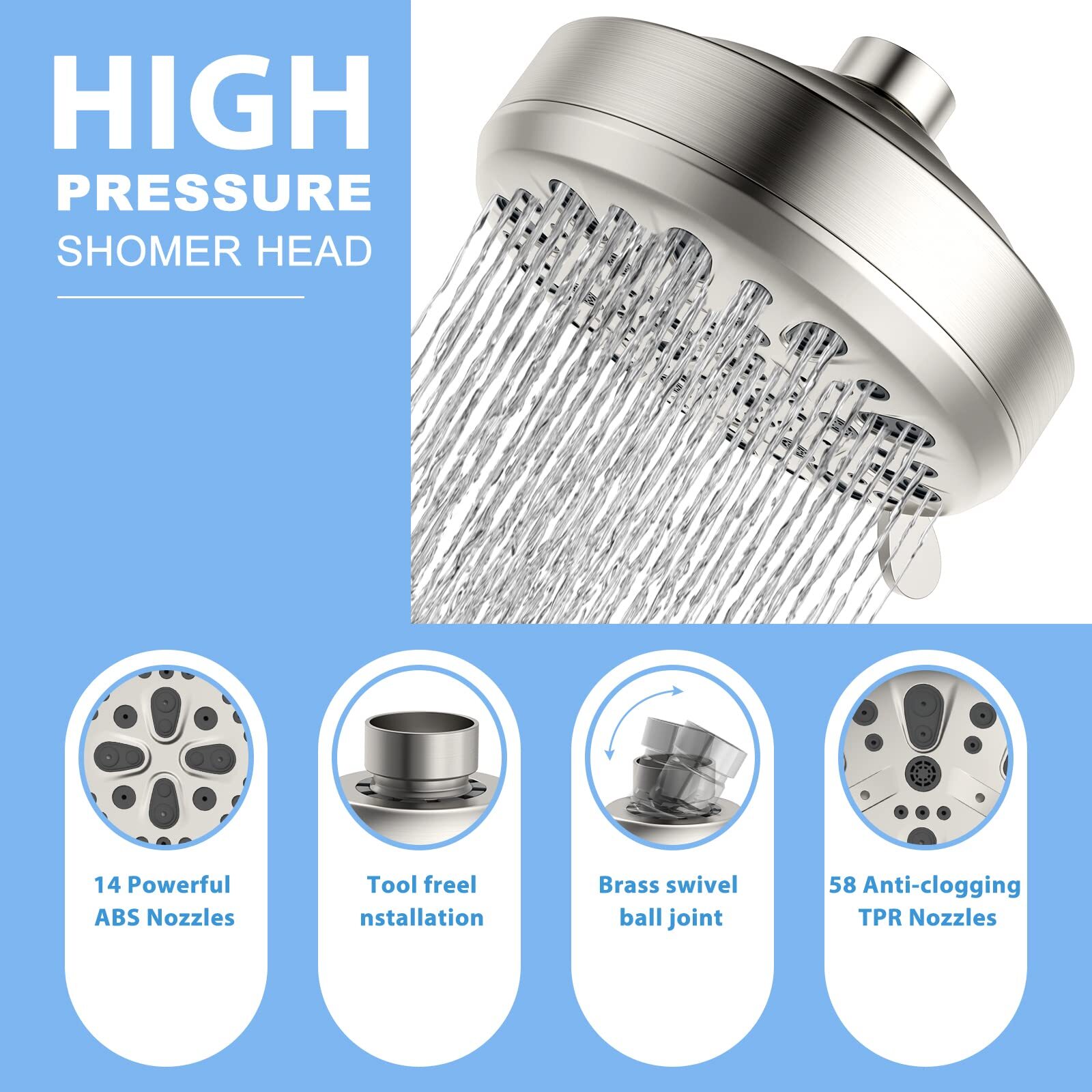 High Pressure Rainfall Shower Head: Rain shower head has a maximum outflow of 2.5 gallons per minute (GPM), relaxed shower experience even at low water flow & pressure. (not available in California) 7-Spray Setting: Upgraded high pressure fixed showerhead with 7-spray settings (Massage, Pulsating Massage, Rain & Pulsating Massage, Power Rain, Gentle Rain, Intense Spray, Water Saving Pause). You can switch and choose a spray mode you like by adjusting the controller on the panel of the showerhead. Superior Material and Exquisite Craft Details: 360°Adjustable brass ball connection joint design, which can easily be adjusted to different angles you like. The 4.7" panel has 58 anti-clogging TPR nozzles and 14 ABS jet nozzles are easy to clean, therefore, the water outlets of the head won’t be blocked easily. Easy Installation: Easily installs fixed shower head with G 1/2 connection thread interface to any standard shower arm in minutes, without plumbers or tools. In case of any problems or complaints during use or installation, please don’t hesitate to us and we will respond with solutions within 24 hours. It’s always our persistence and belief to provide high-quality products and satisfactory customer services.